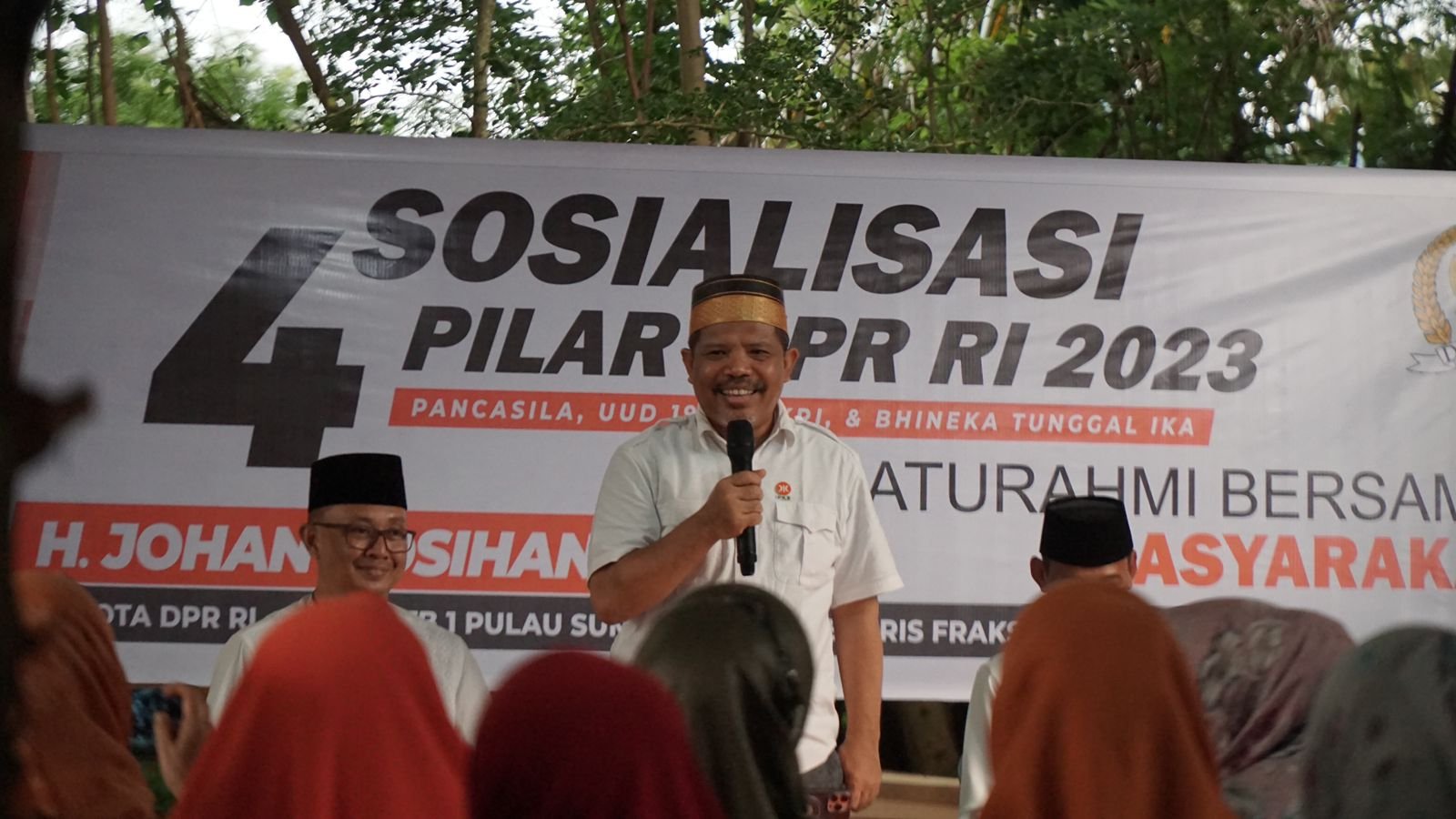 Johan Rosihan yang mewakili Dapil NTB I Pulau Sumbawa menjelaskan hal-hal terkait Sosialisasi Empat Pilar Kebangsaan yang terdiri dari Pancasila, UUD 1945, Bhinneka Tunggal Ika dan NKRI. Program Sosialisasi Empat Pilar tersebut merupakan program wajib yang dijalankan oleh setiap anggota legislatif di masing-masing daerah pemilihannya.