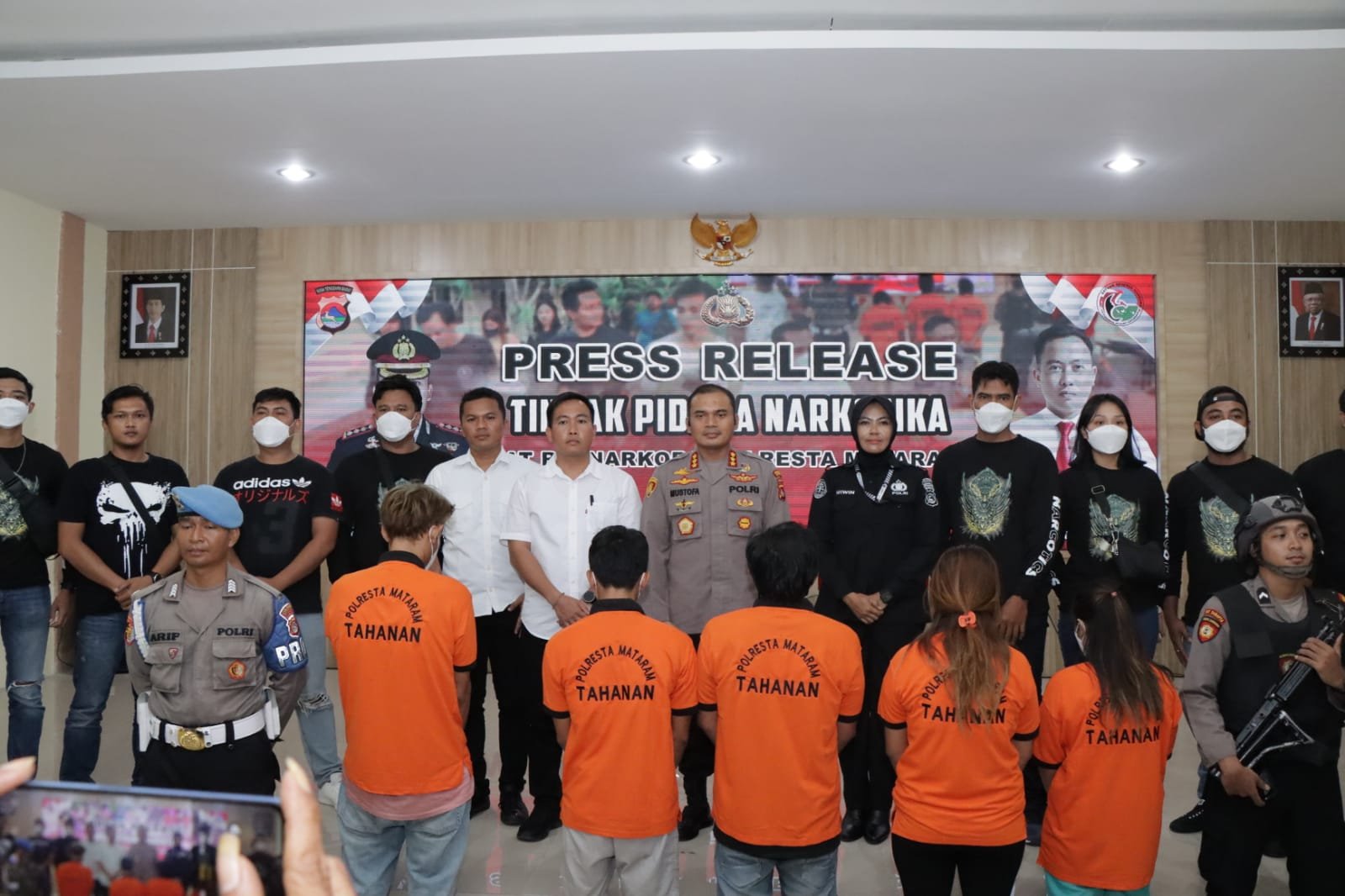 Terduga kasus narkoba saat dihadirkan pada konferensi pers di Mapolresta Mataram. (Istimewa)
