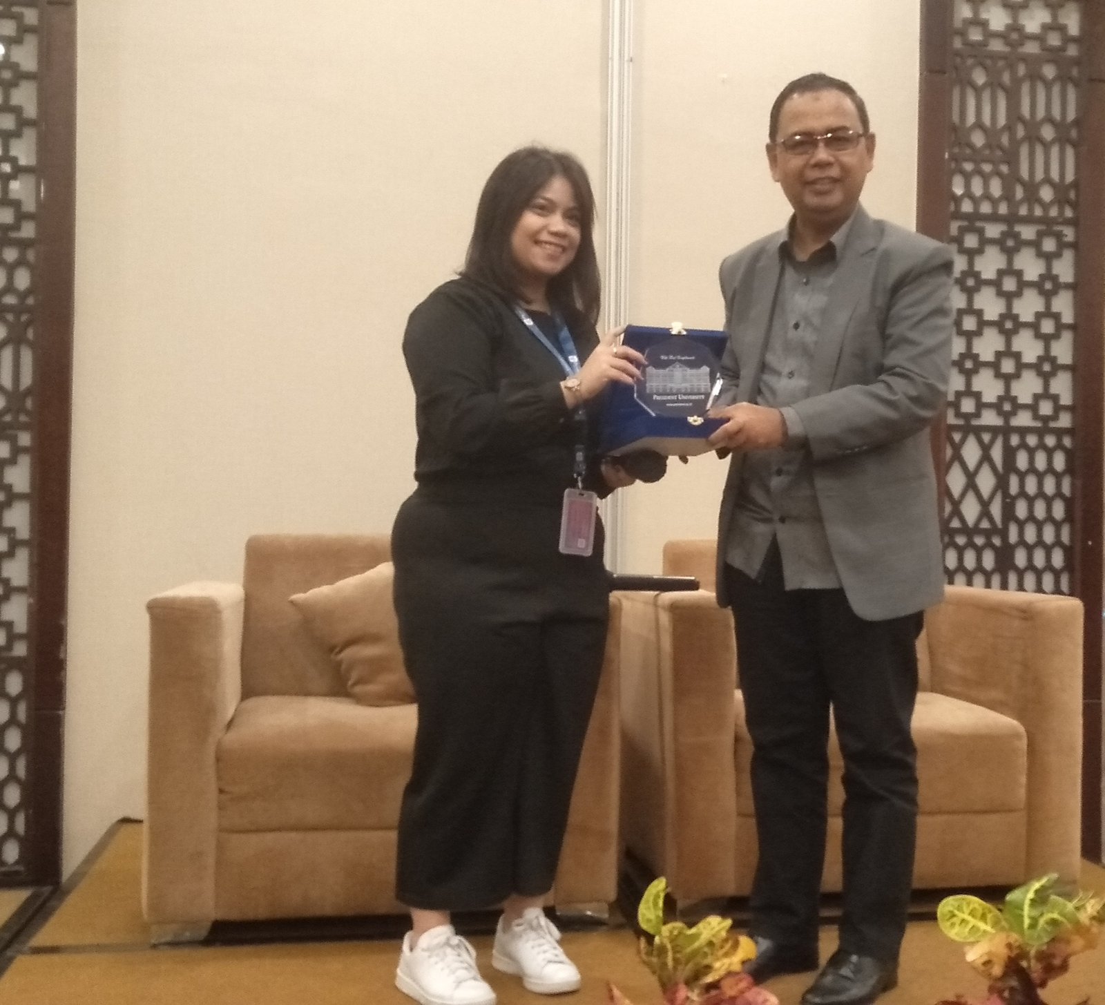 Kepala Dinas Pendidikan dan Kebudayaan Provinsi NTB Dr. H. Aidy Furqan menerima plakat dari Jella Christania, B.A. Comm, Senior Marketing President University. (HarianNusa)