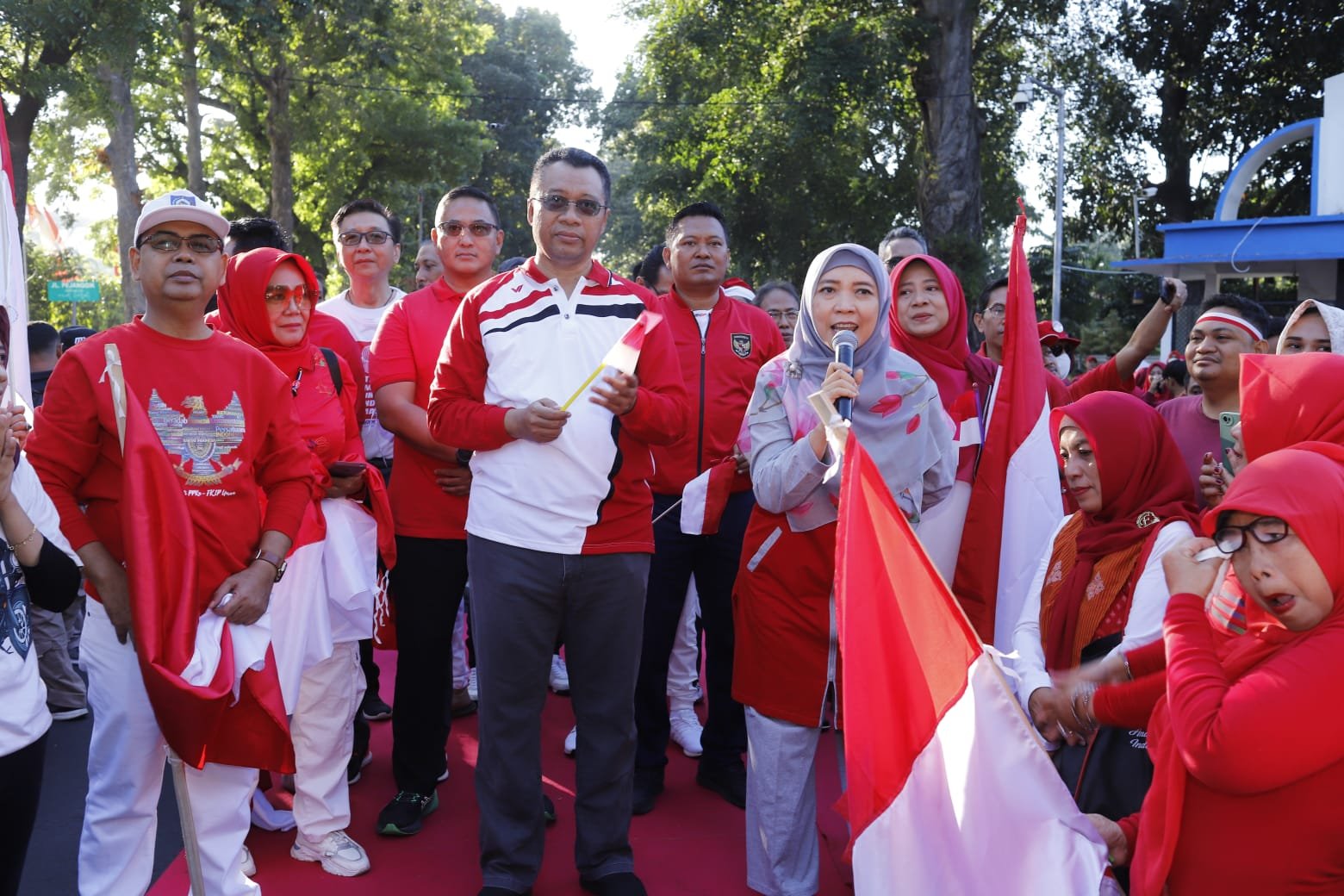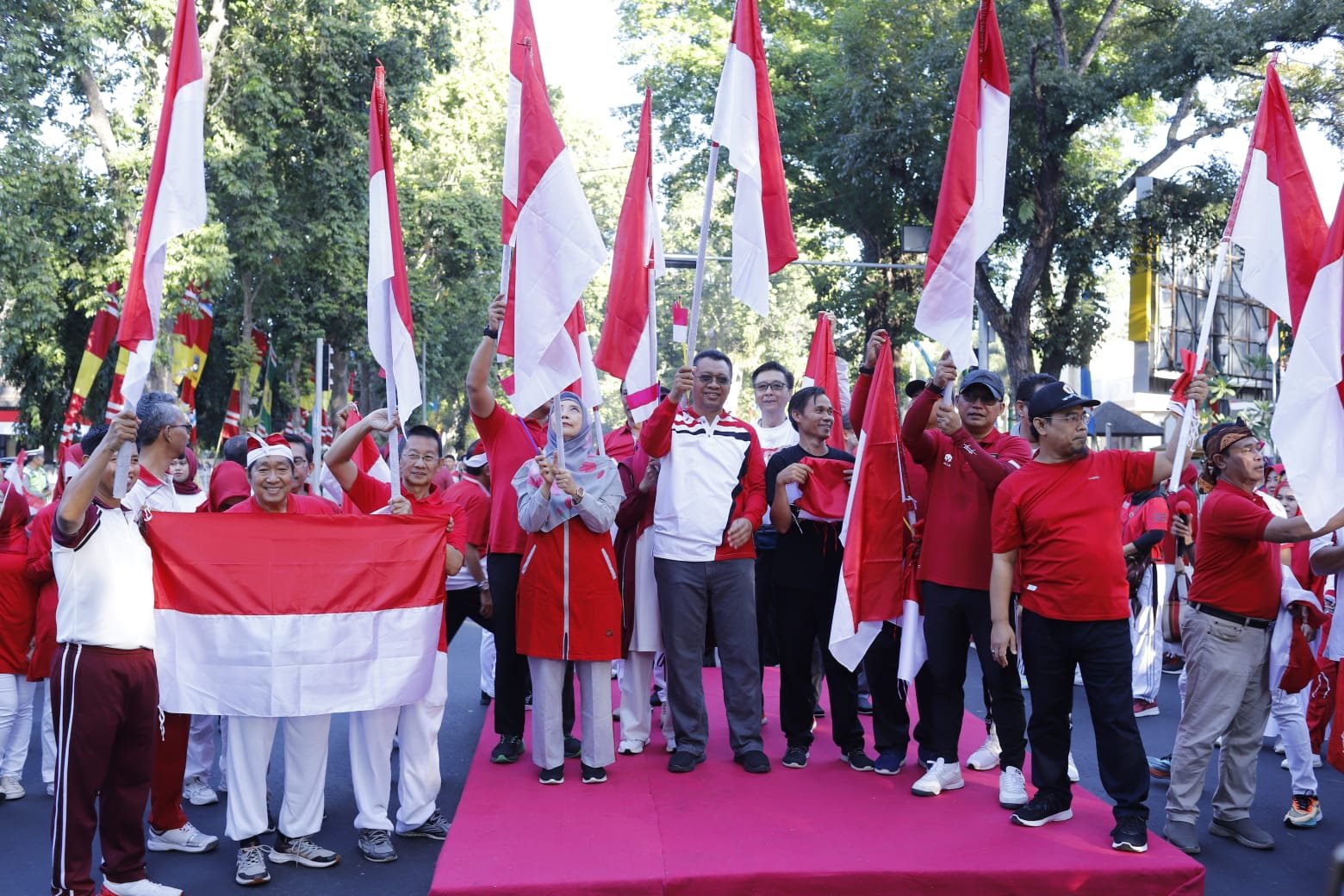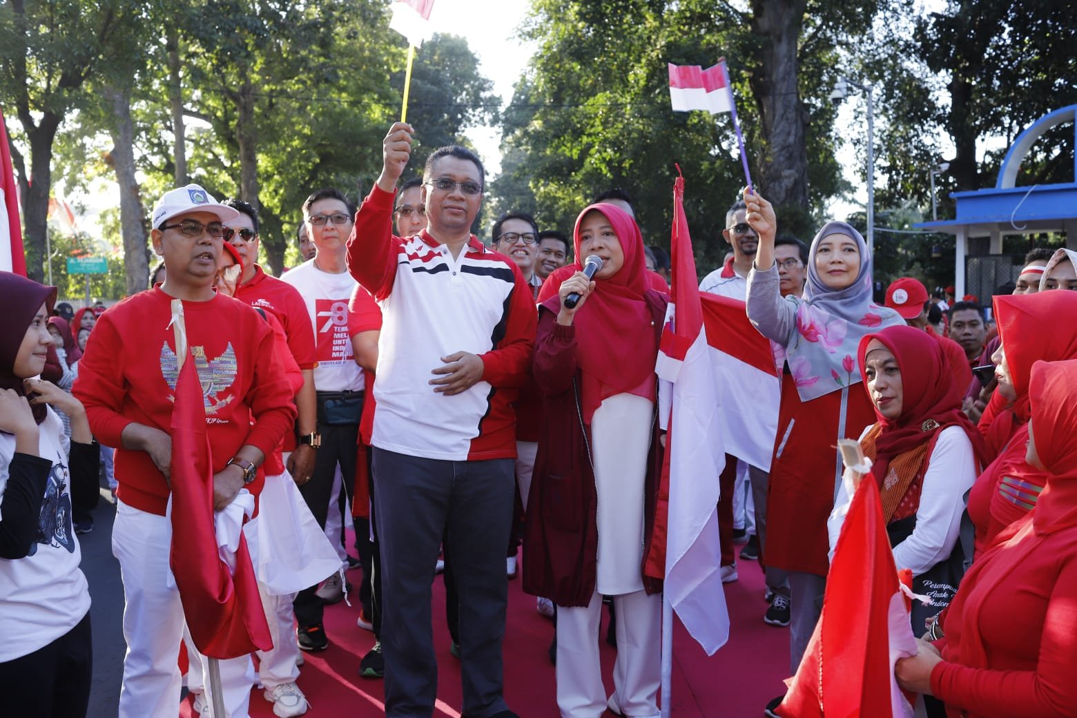HarianNusa, Mataram – Dalam rangka menyambut Hari Ulang Tahun (HUT) Kemerdekaan Republik Indonesia yang ke – 78 tahun, Gubernur NTB, Dr. H. Zulkieflimansyah didampingi oleh Wakil Gubernur NTB, Dr. Hj. Sitti Rohmi Djalilah melaunching Pembagian dan Pengibaran Bendara Merah Putih secara Serentak dirangkai dengan acara senam pagi bersama diikuti oleh seluruh ASN Lingkup Pemerintah Provinsi NTB, Instansi Vertikal, Seluruh Karyawan BUMN dan BUMD serta Pelajar SLTA se – Kota Mataram, Jum’at 11 Agustus 2023.