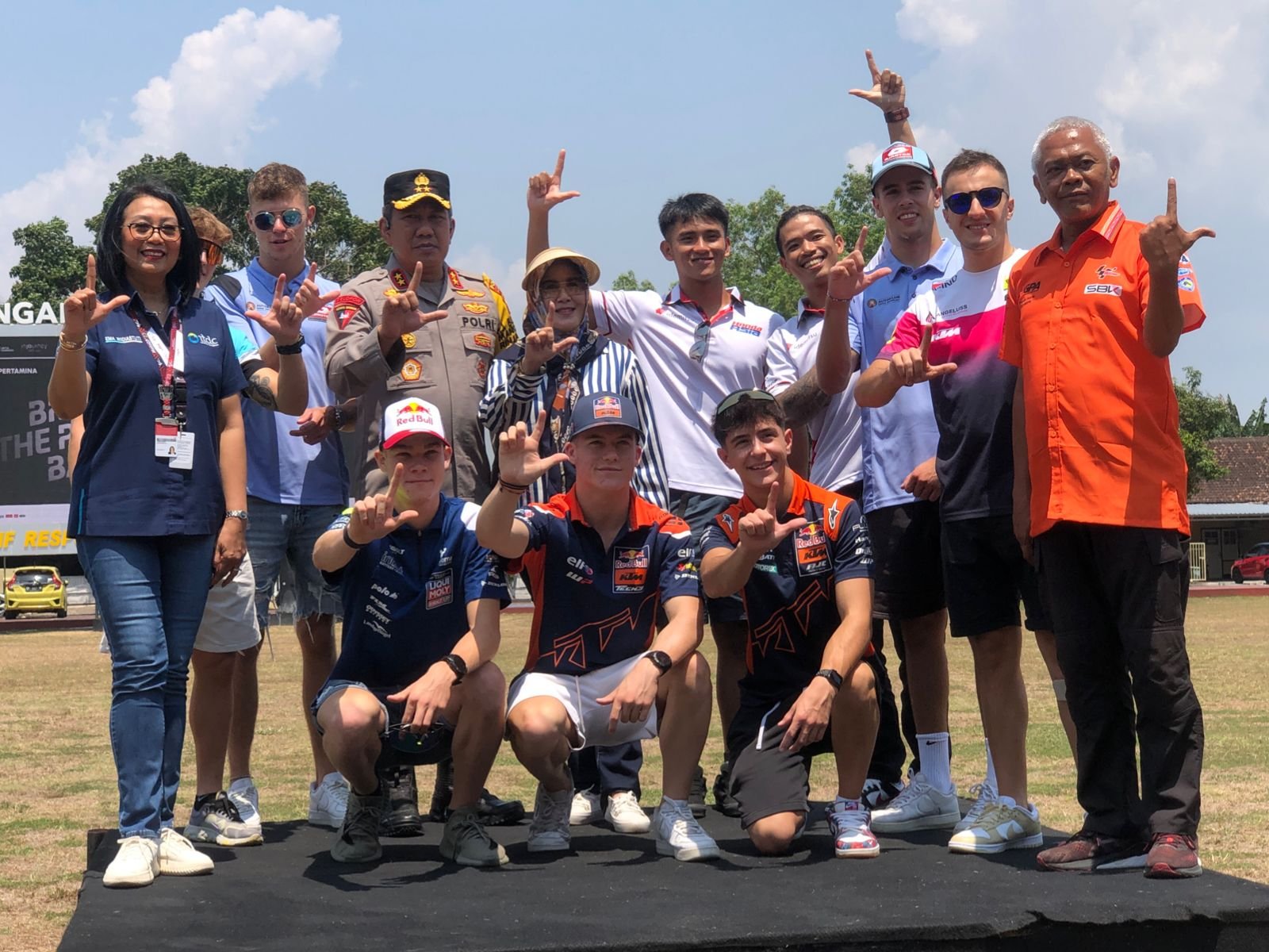 Riders Parade pembalap MotoGP 2023 diikuti pula oleh 10 pembalap lokal dan komunitas motor untuk memeriahkan parade tersebut. (HN)