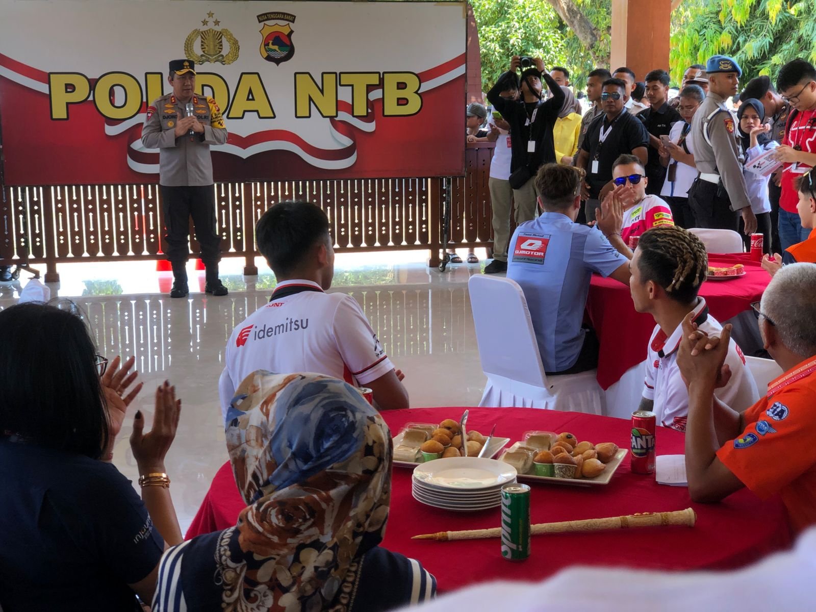 Para pembalap tiba di Kantor Mapolda NTB, Rabu 11 Oktober, pada pukul 13:00 WITA dan disambut Kapolda di lapangan Bharadaksa Polda NTB.