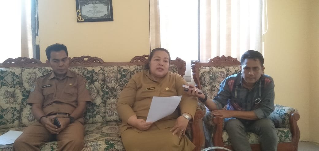 Kepala Dinas Pertanian Sumbawa Besar, Ni Wayan Rusmawati (tengah) saat diwawancara media di ruang kerjanya. (HN)