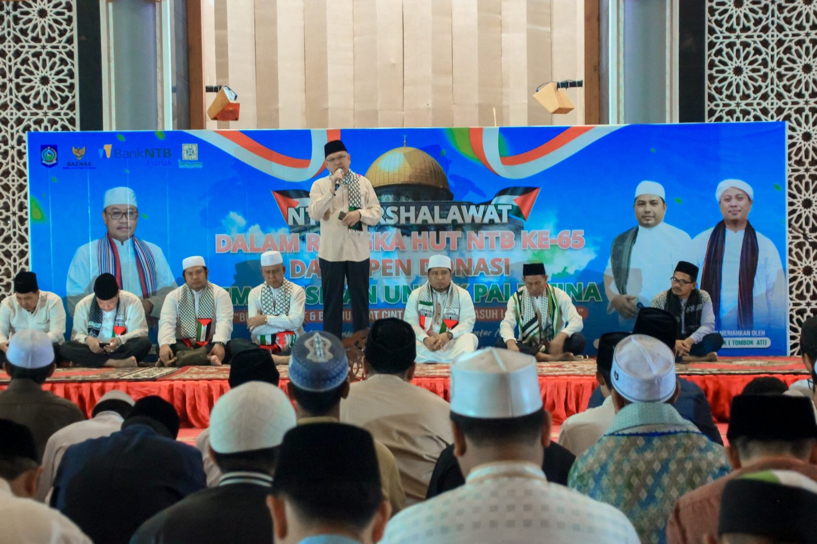 HarianNusa, Mataram – NTB Bersholawat dan Open Donasi Kemanusiaan untuk Palestina oleh Pemerintah Provinsi NTB berlangsung penuh khidmat, Rabu 29 November 2023 malam, bertempat di Masjid Hubbul Wathan Islamic Center (IC) Mataram.