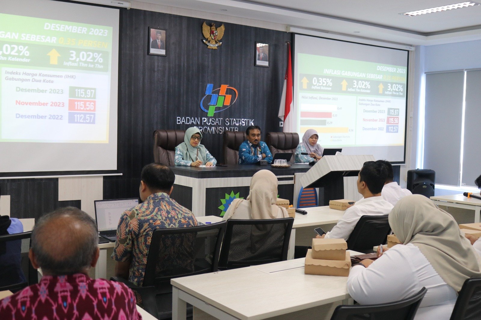 "Kita melihat bahwa jumlah orang yang berkunjung dan menginap di NTB mengalami peningkatan yang signifikan," ungkap Kepala BPS Provinsi NTB Drs. Wahyudin saat memimpin dan menyampaikan berita rilis resmi statistik di aula Tambora BPS NTB, Selasa (02/01/24)