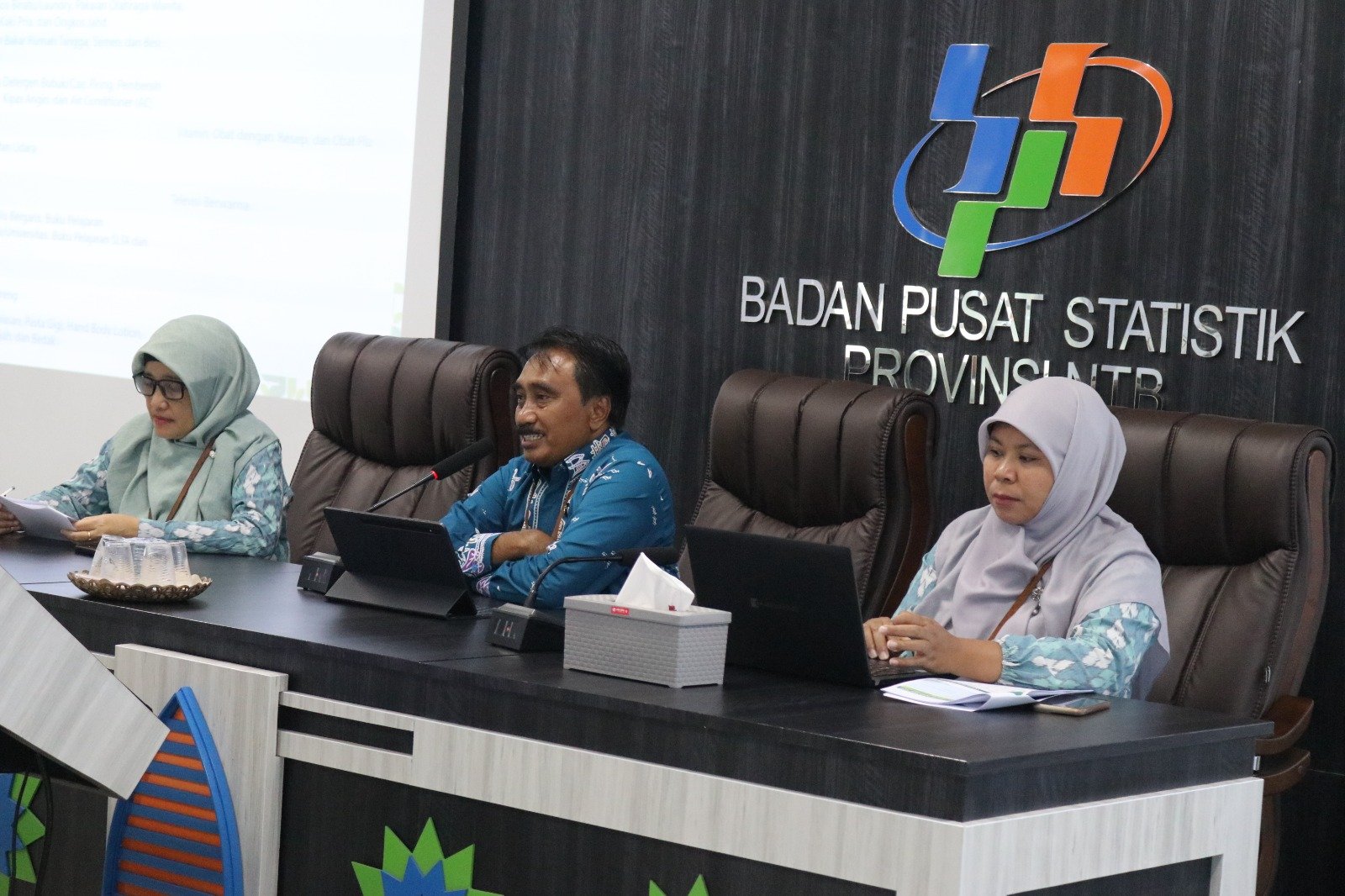 Kepala BPS Provinsi NTB Drs. Wahyudin saat memimpin dan menyampaikan berita rilis resmi statistik di aula Tambora BPS NTB, Selasa (02/01/24). (Istimewa)