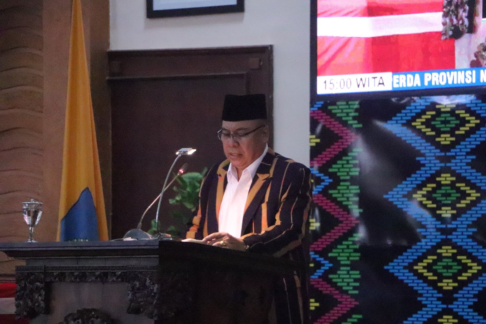 1. Sekretaris DPRD NTB, H. Lalu Surya Bahari saat membacakan perubahan keputusan DPRD NTB tentang pimpinan dan anggota Badan Kehormatan (BK). (HN)