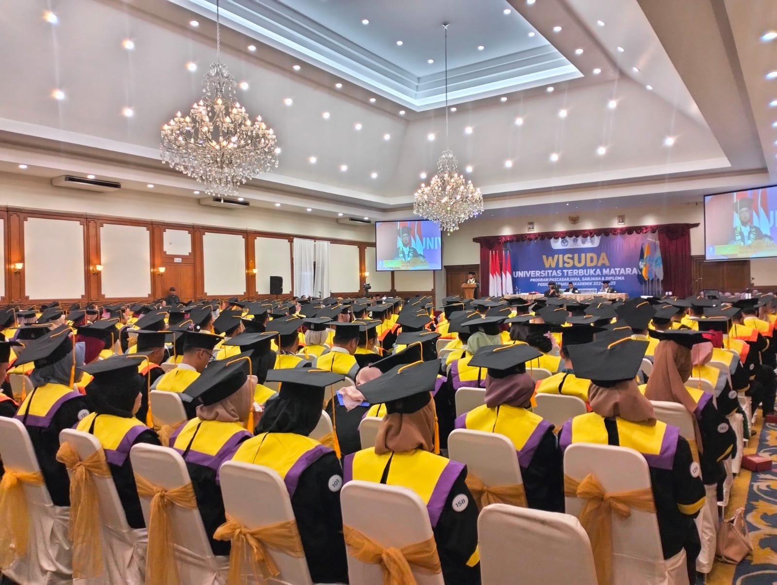 Kegiatan wisuda Mahasiswa/i Universitas Terbuka Mataram yang digelar di Grand Legi Hotel Mataram. (Ist)
