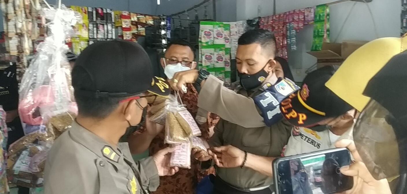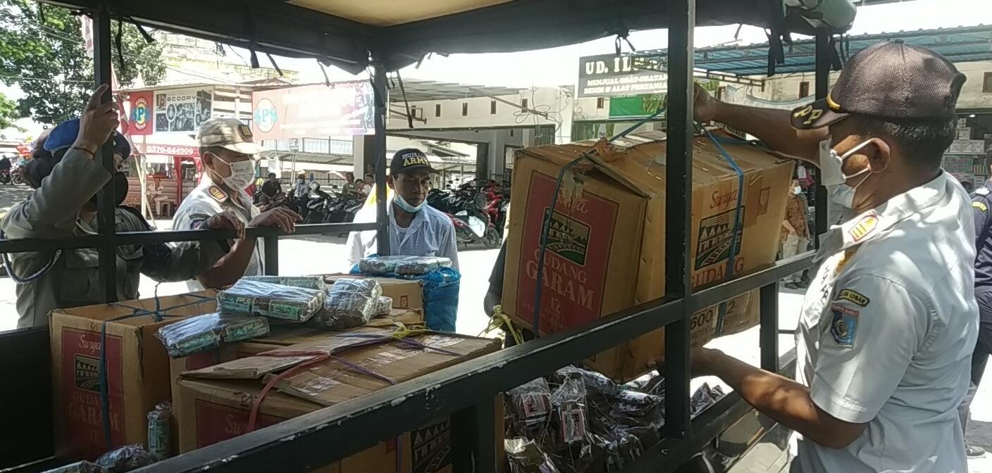 Kegiatan penertiban rokok dan tembakau iris tanpa cukai di pasar Kediri. (HarianNusa)